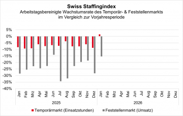 Swiss Staffingindex – Positiver Jahresauftakt der Temporärbranche